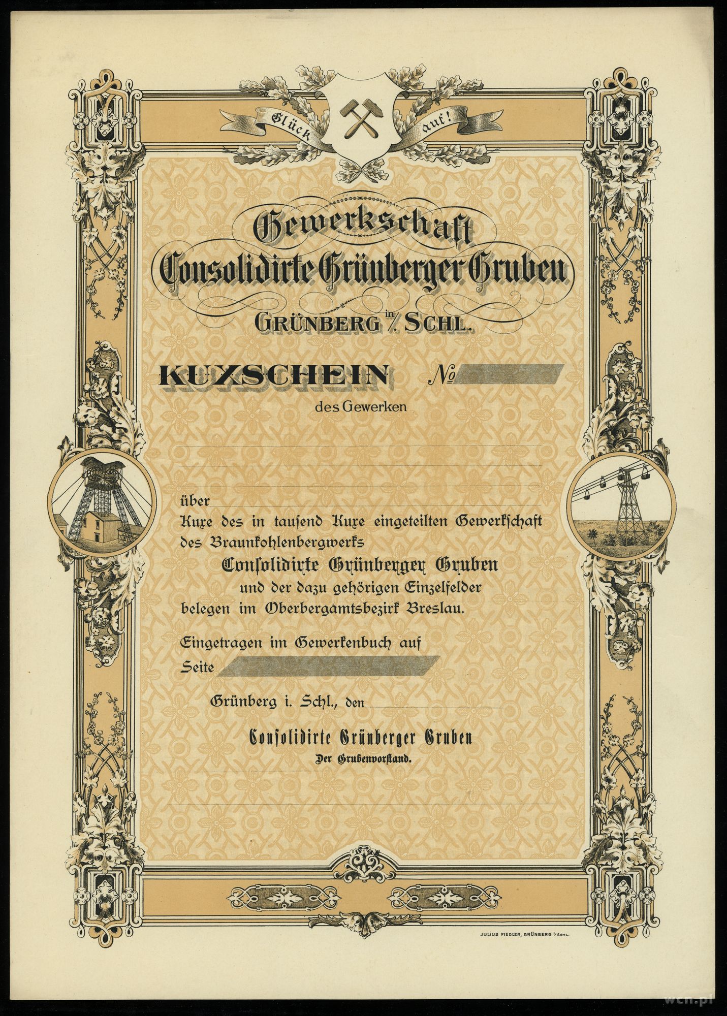 1) 1 akcja na 100 złotych [Norblin, B-cia Buch i T. Werne... | I-/II- |
