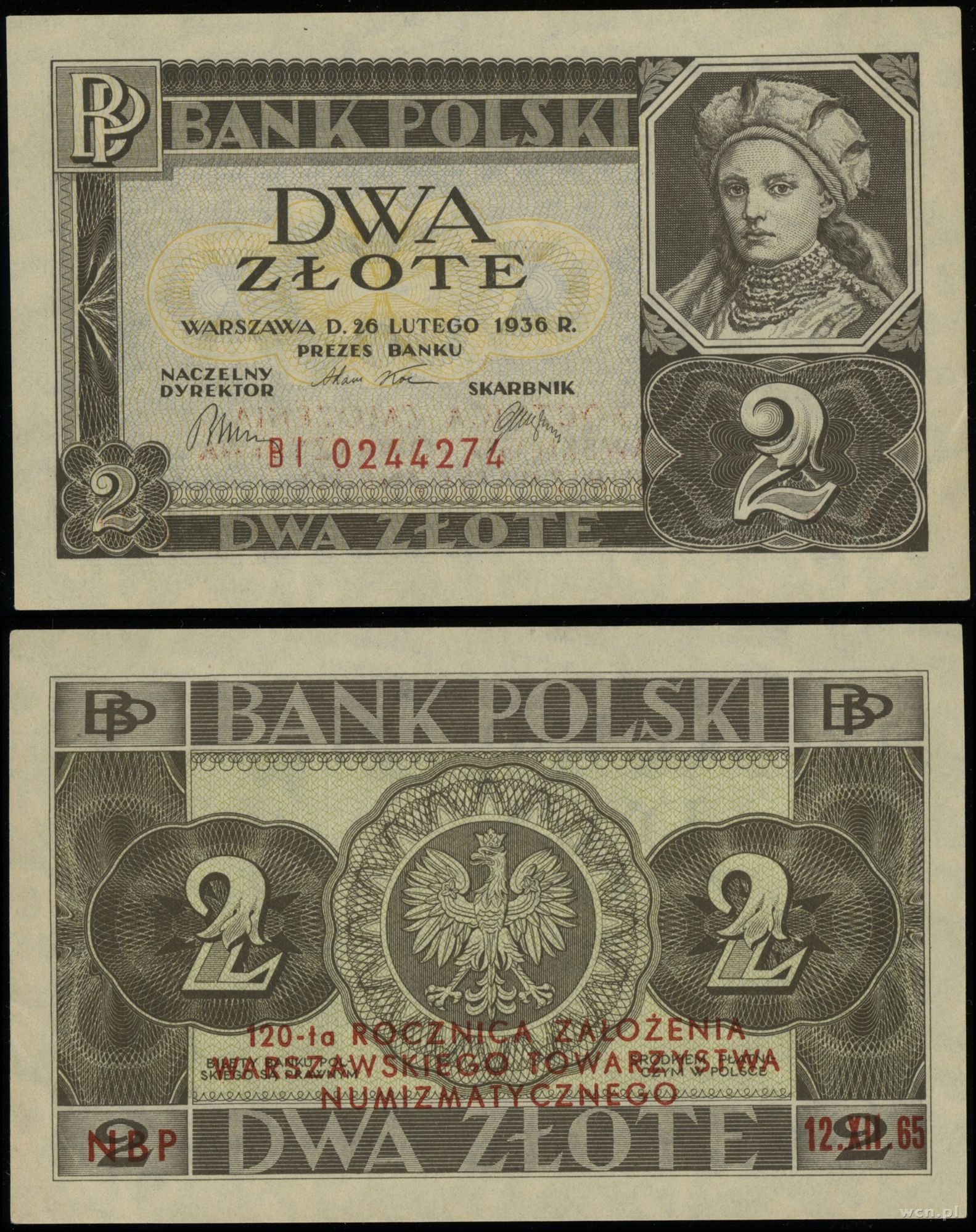 Polska, 2 złote z okolicznościowym nadrukiem, 26.02.1936
