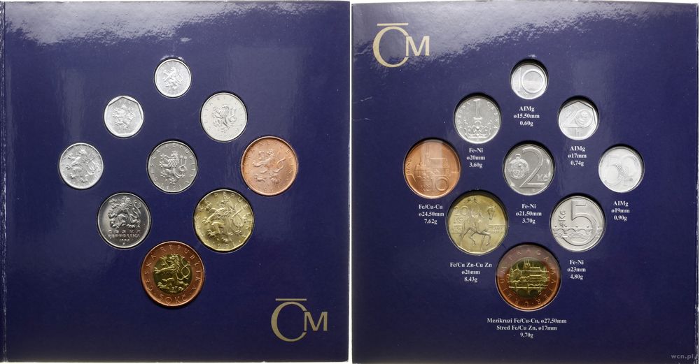 | Opis: | Czechy - Republika od 1993, zestaw 9 monet, 1996, nominały od 10 halerzy do 50 koron |