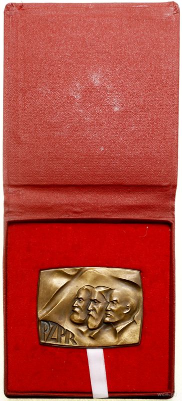 | Opis: | Polska - Polska Rzeczpospolita Ludowa (1952–1989), Za upowszechnianie idei marksizmu-leninizmu, 1982, Warszawa, Aw: Gałązka, obok ZA / UPOWSZECHNIANIE / IDEOLOGII / MARKSIZMU / LENINIZMU, Rw: Trzy popiersia, Marksa, Engelsa i Lenina w lewo, po prawej PZPR, projektowała i wykonała Magdalena Dobrucka, dodatkowo oryginalne pudełko |