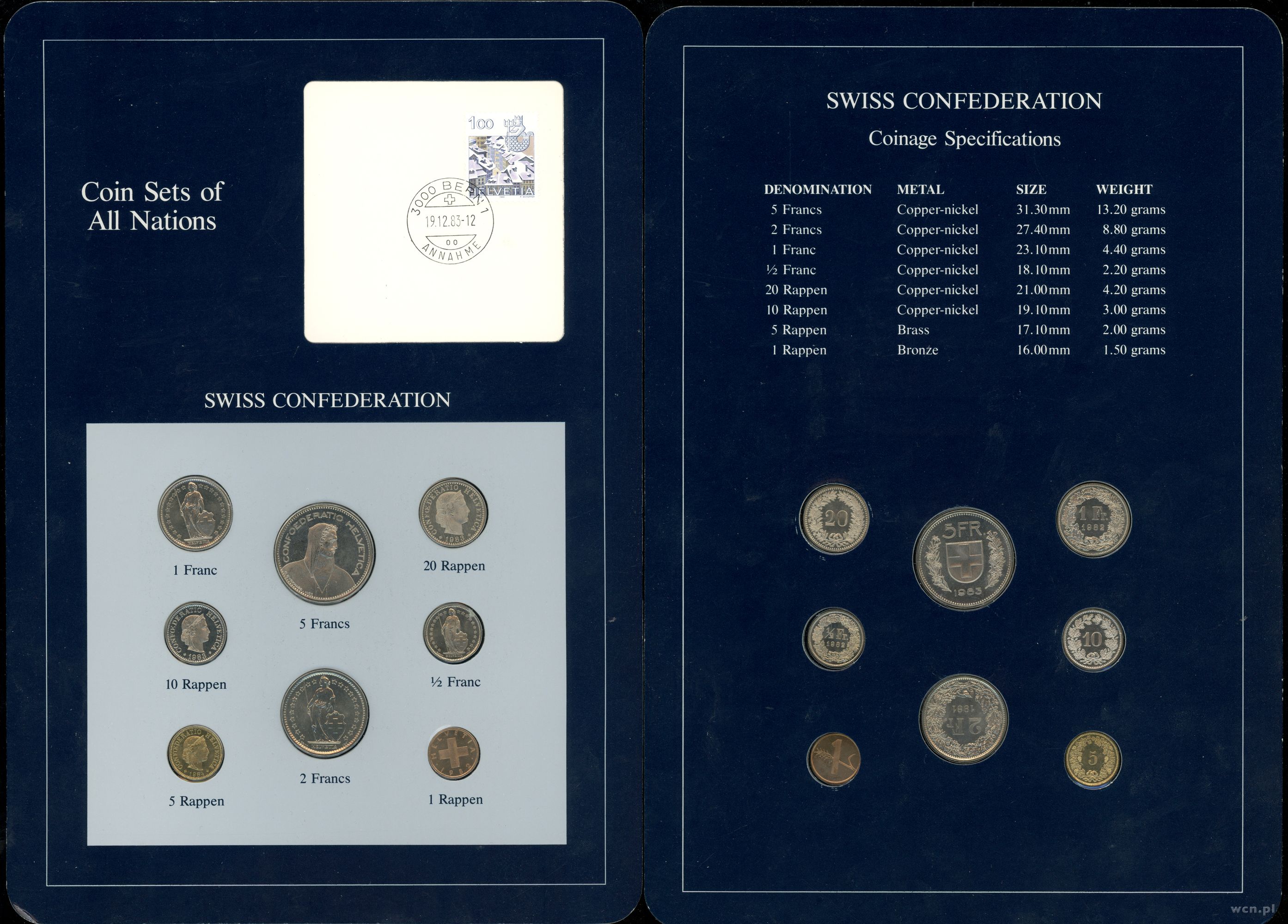 Szwajcaria, zestaw 8 monet, 1981–1983