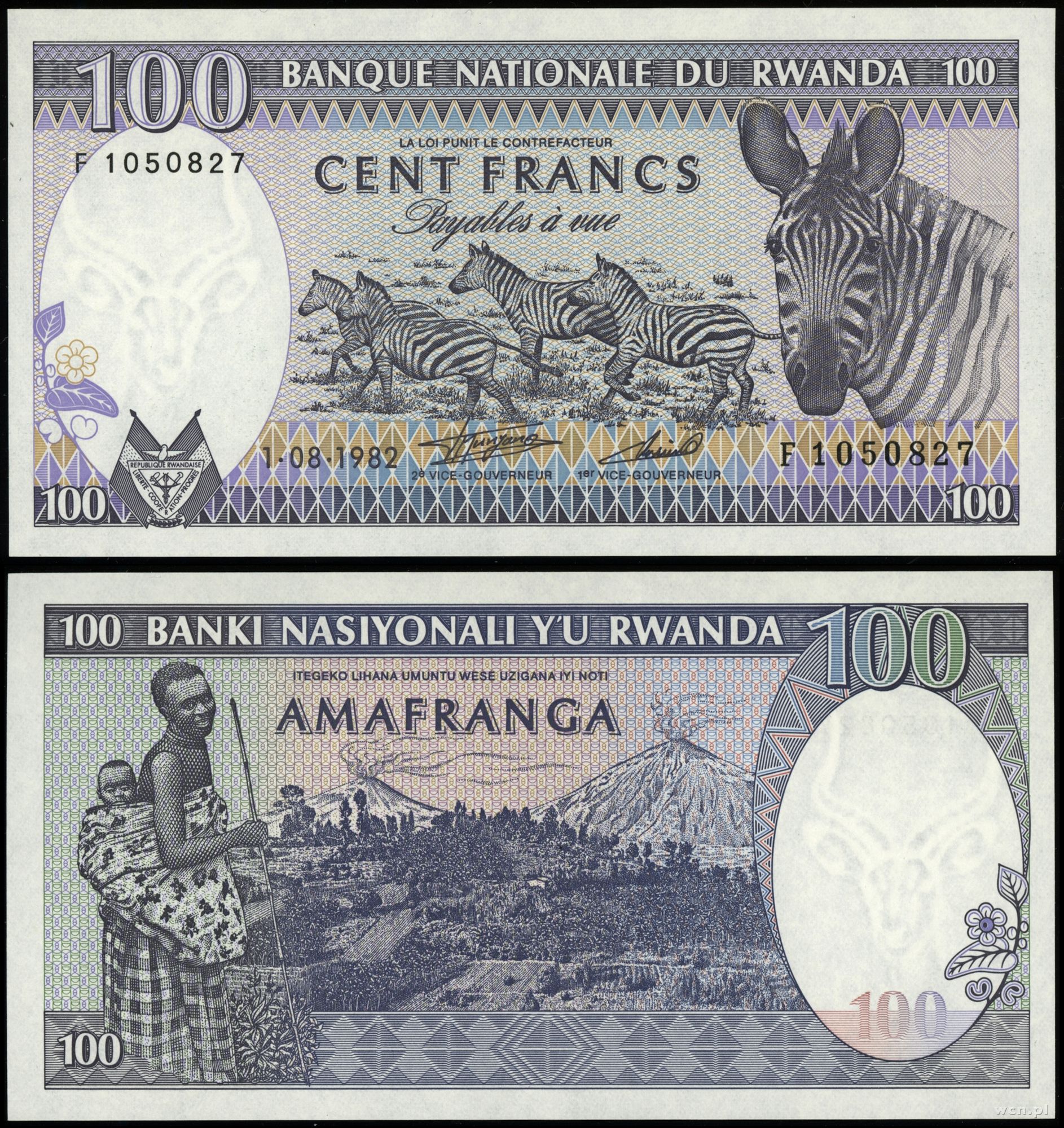 Rwanda, 100 franków, 1.08.1982