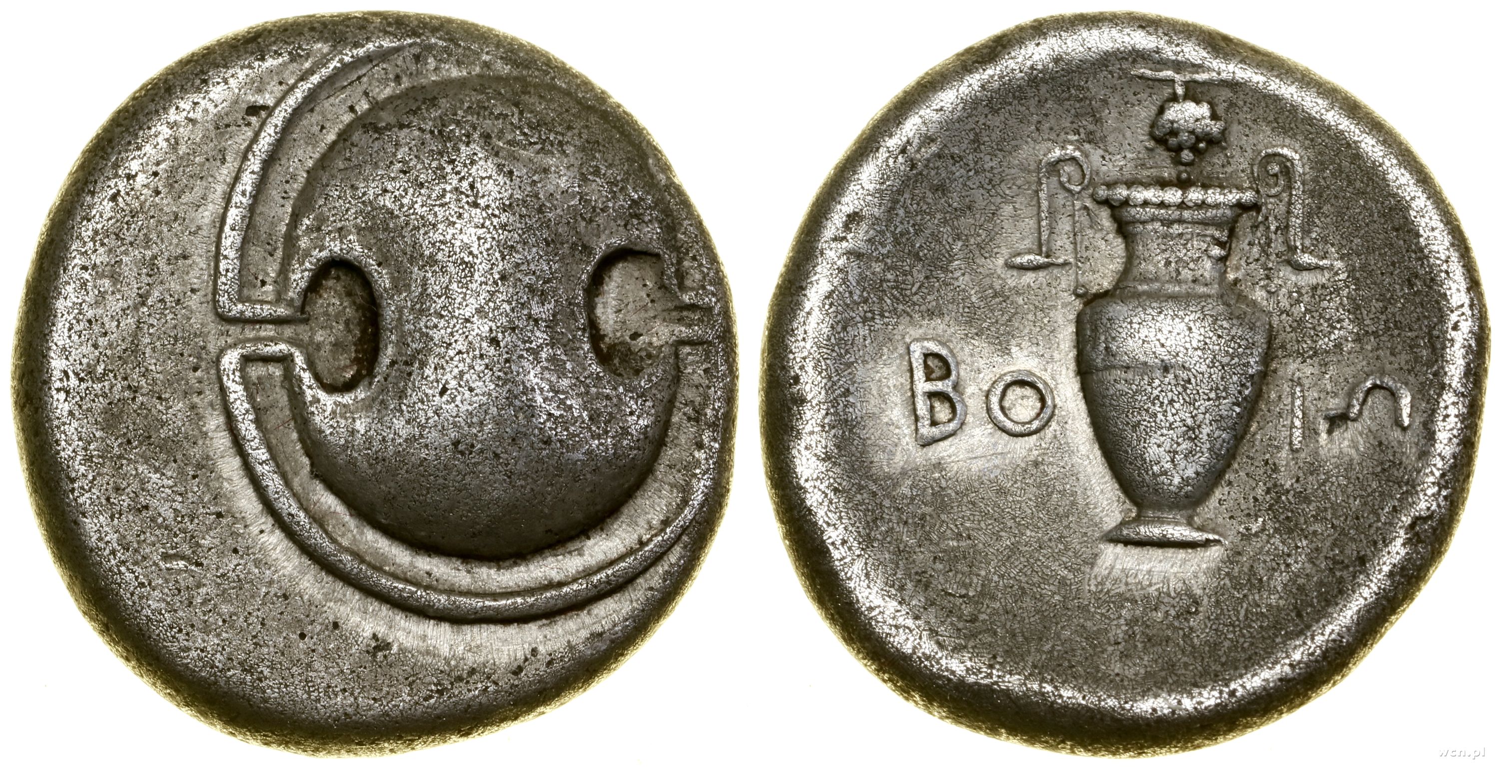 Aw: Tarcza beocka, Rw: Amfora, po bokach BO - IΩ