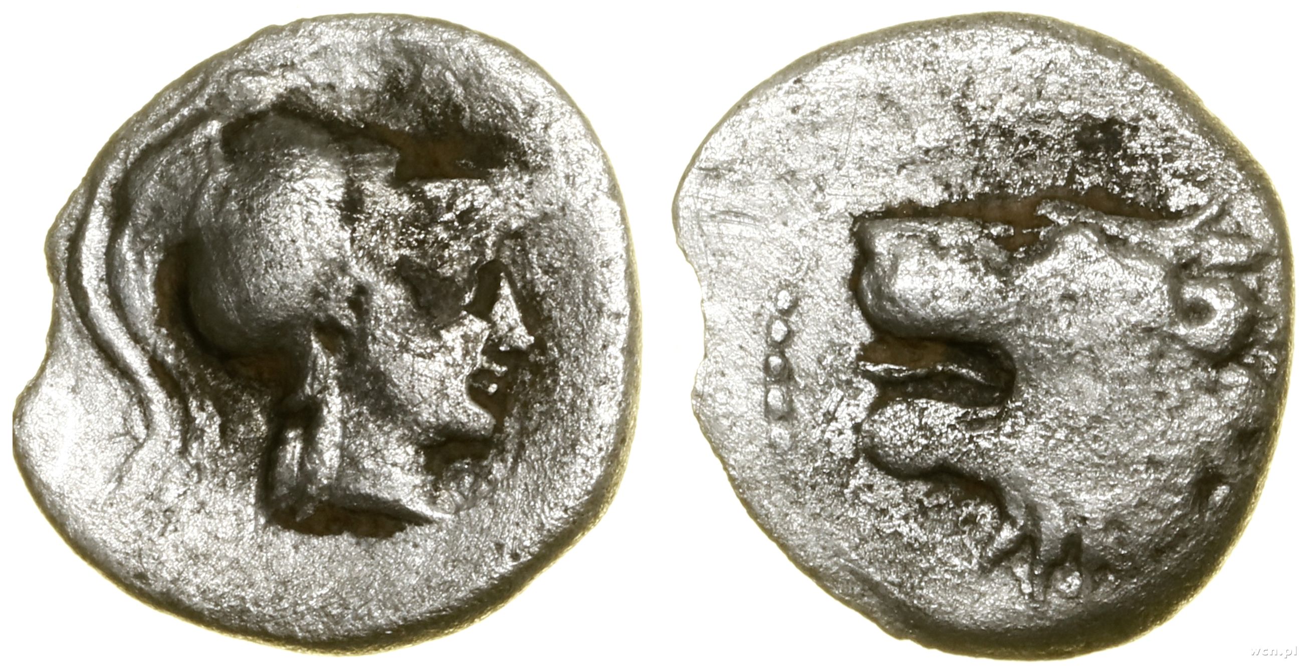 Aw: Proton dzika w lewo, Rw: W kwadracie incusum głowa lw...