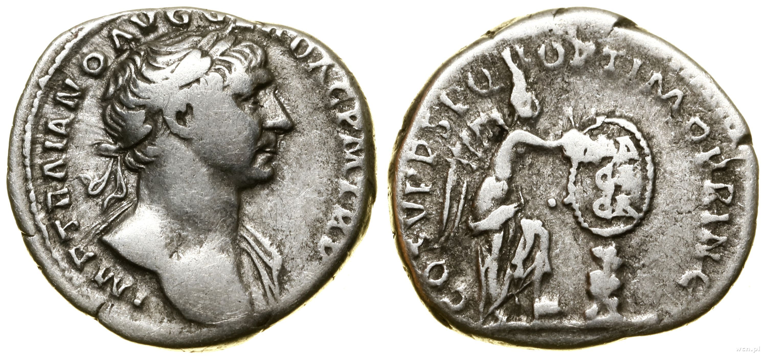 IMP TRAIANO AVG GER DAC P M TR P, Rw: Wiktoria stojąca w ...