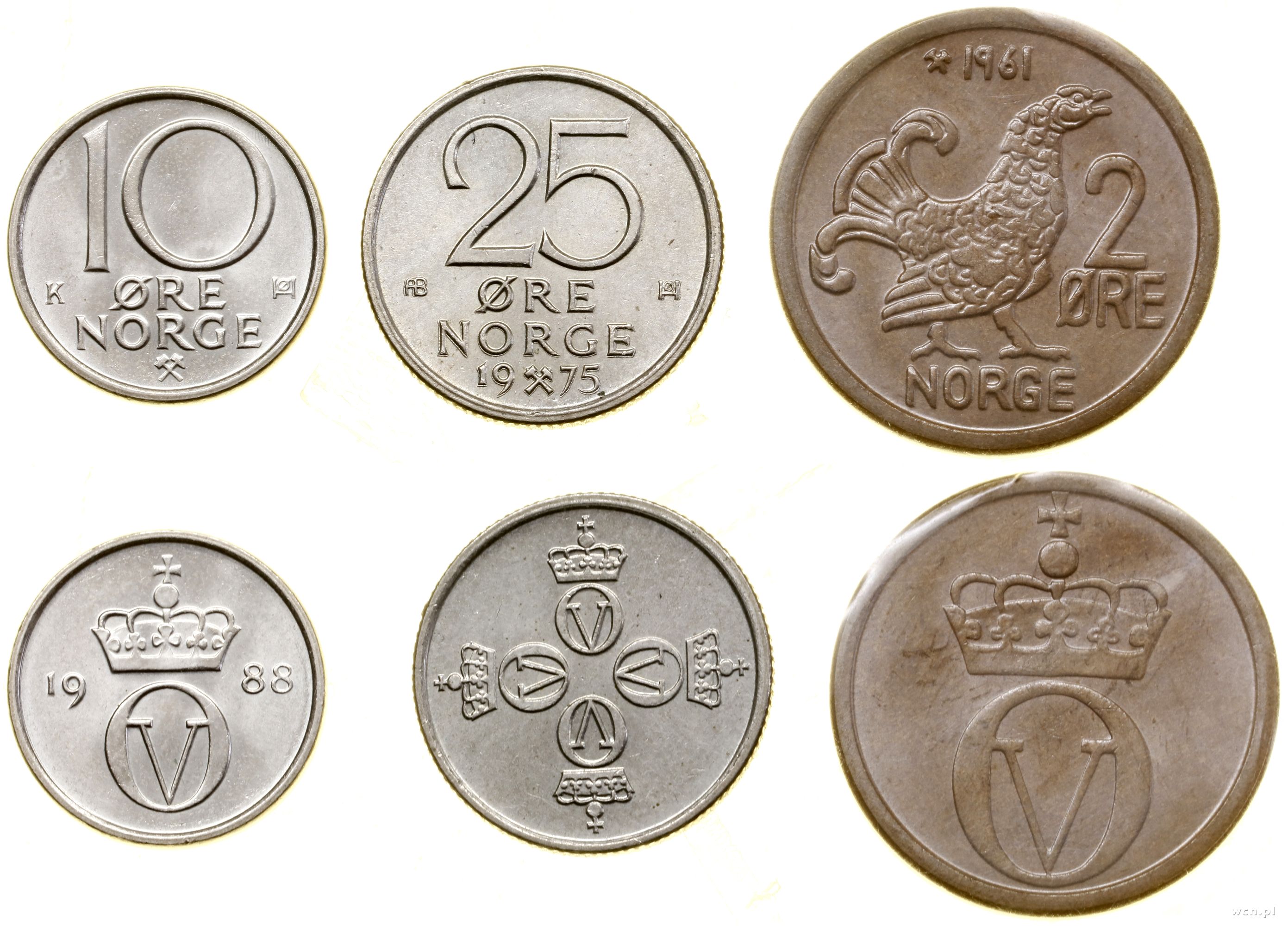 w skłąd zestawu wchodzi 25 Øre 1975, 10 Øre 1988, 2 Øre 1961