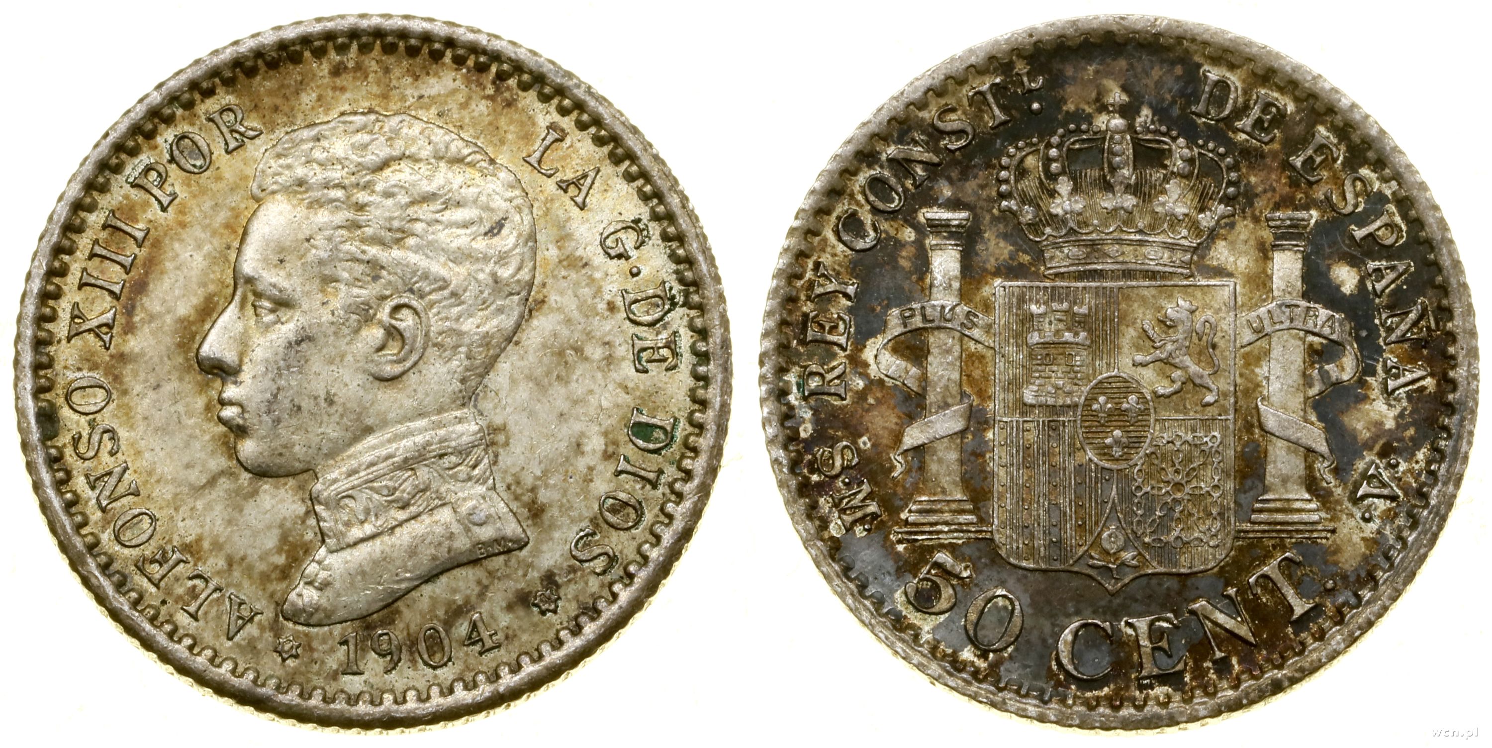 | Hiszpania, 50 centymów, 1904 SMV |