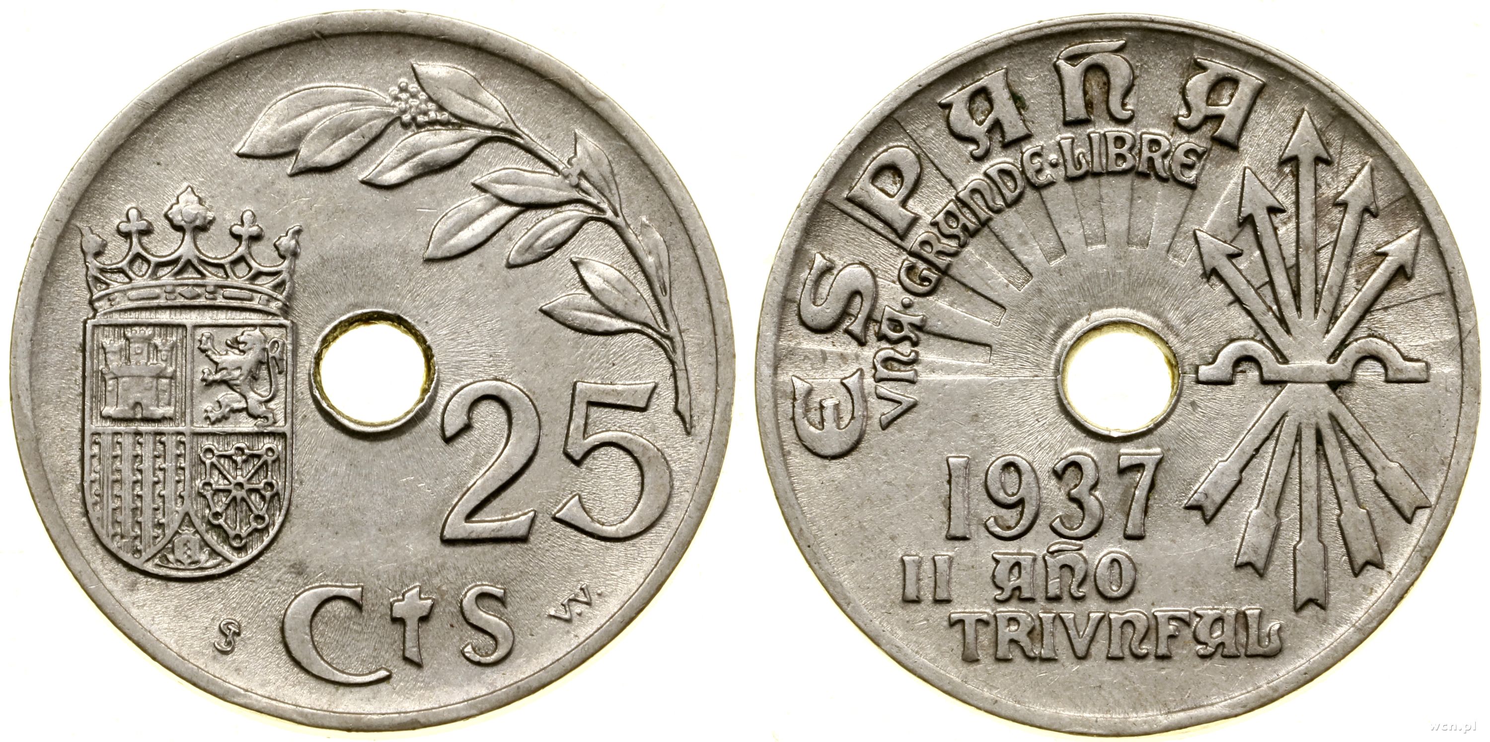 | Hiszpania, 25 centymów, 1937 |