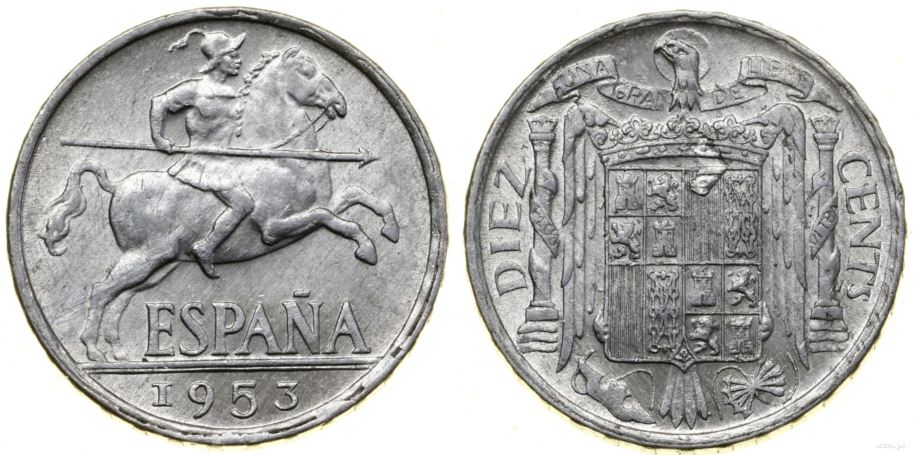 | Hiszpania, 10 centymów, 1953 |