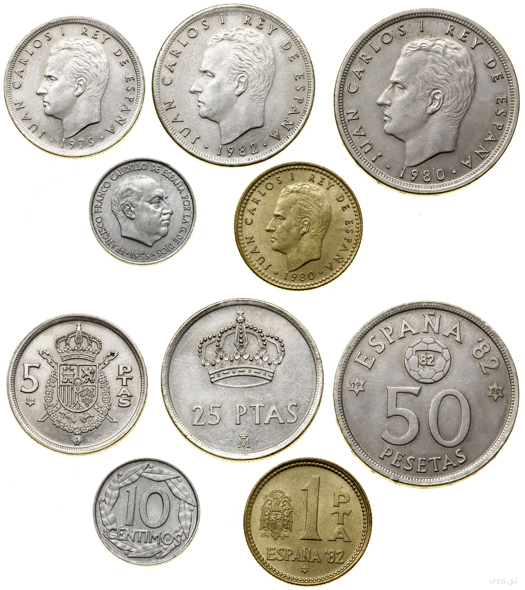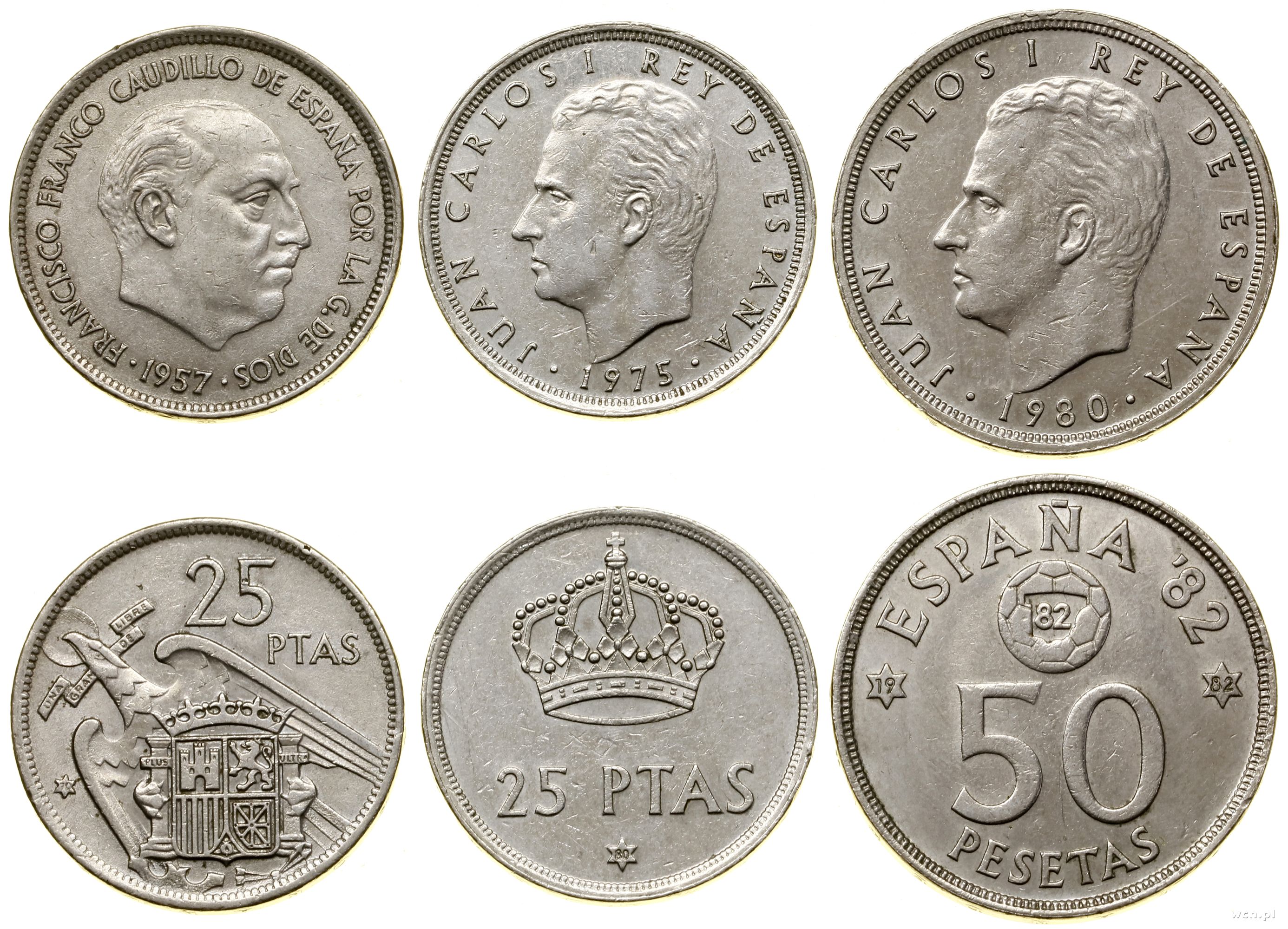 w skład zestawu wchodzi 50 peset 1980, 25 peset 1957 (Fra...