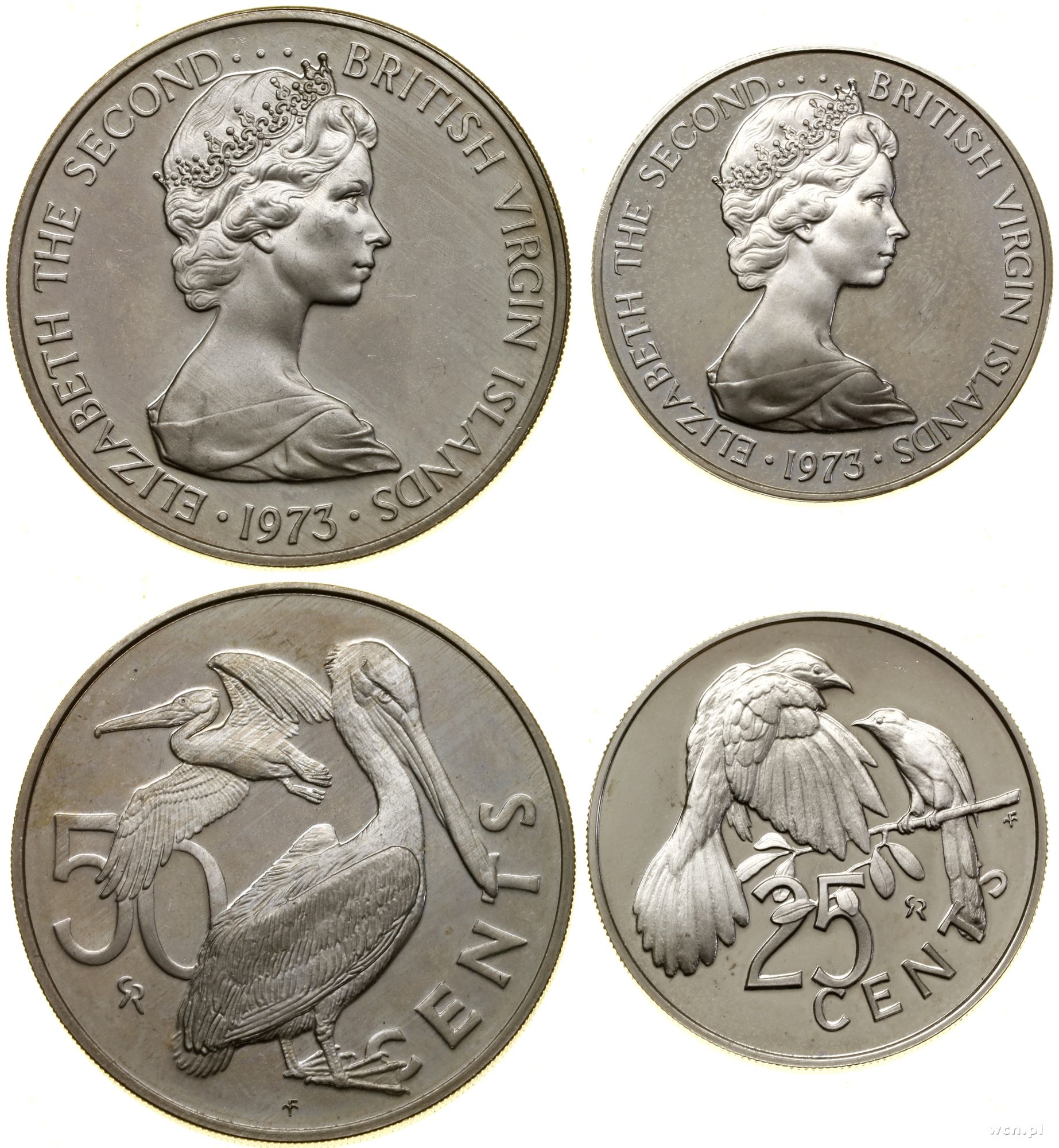 Wyspy Dziewicze, zestaw 2 monet, 1973
