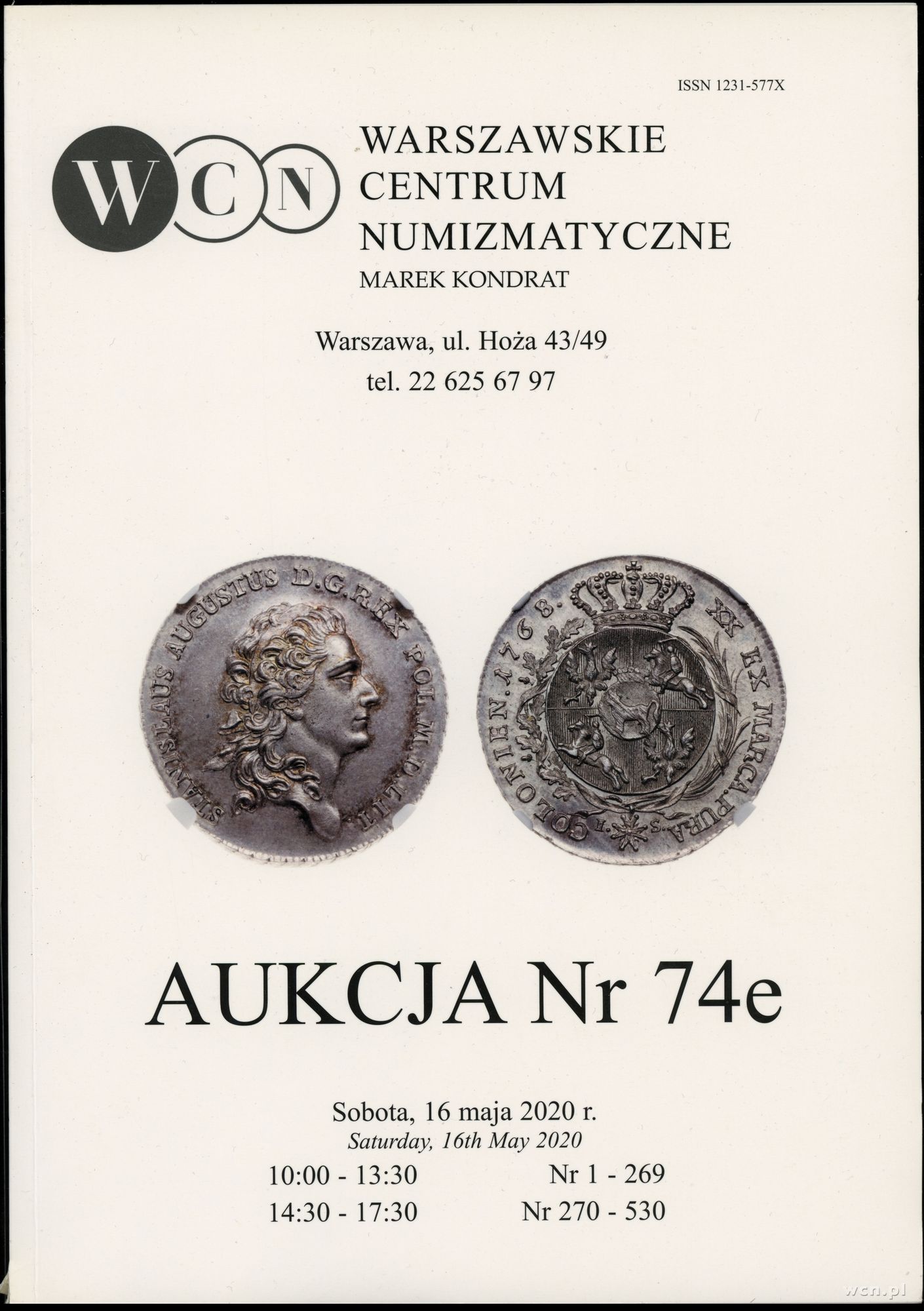 Katalog aukcji WCN nr 74e, Warszawa 16.05.2020, ISSN 1231...
