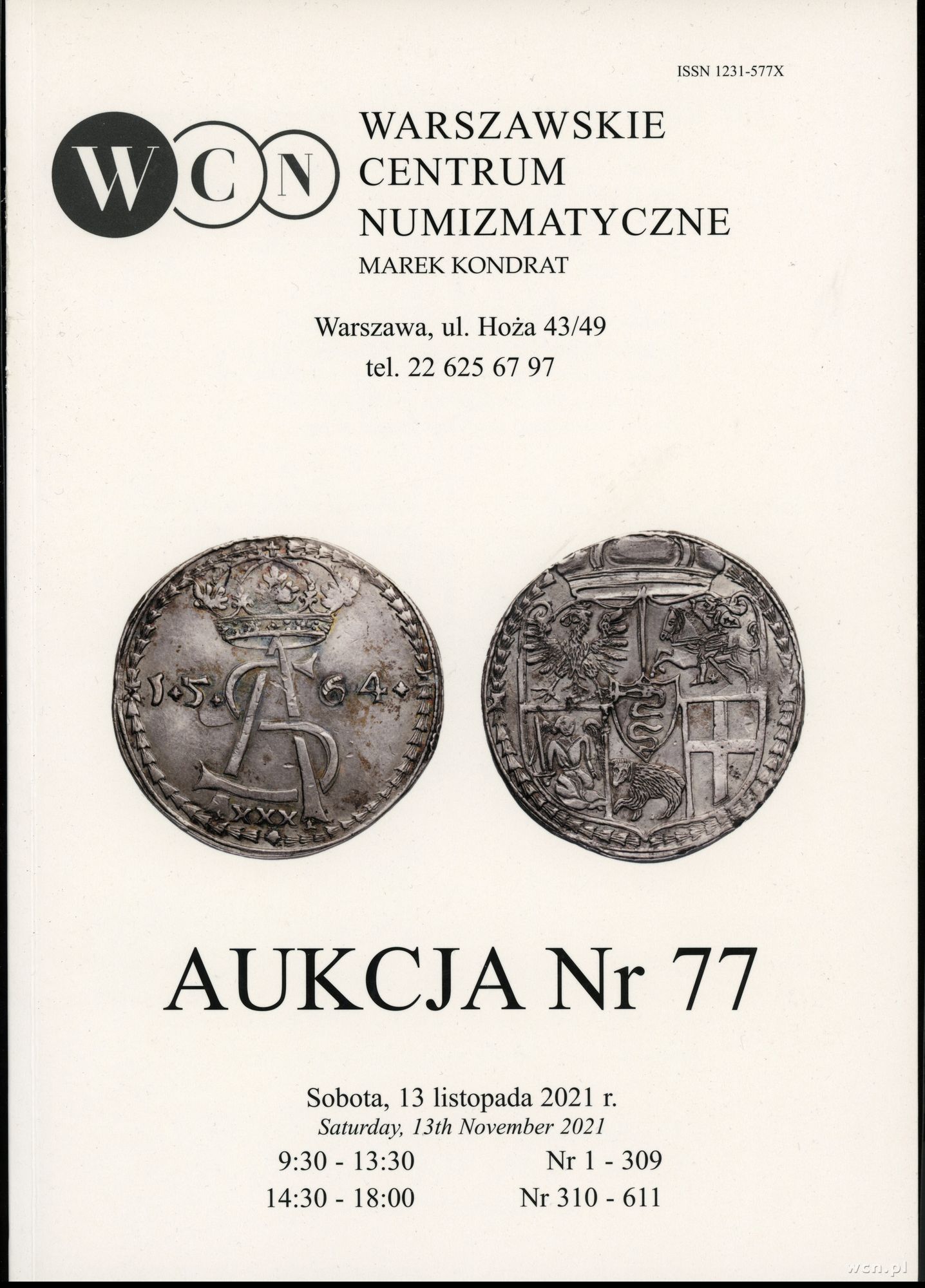 Katalog aukcji WCN nr 77, Warszawa 13.11.2021, ISSN 1231-...