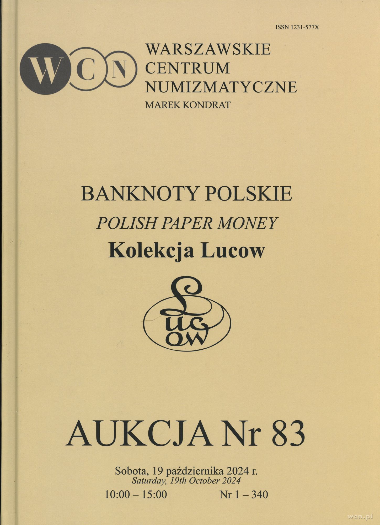 literatura numizmatyczna, Katalog aukcji WCN nr 83, Banknoty Polskie. Kolekcja Lucow, 19.10.2024