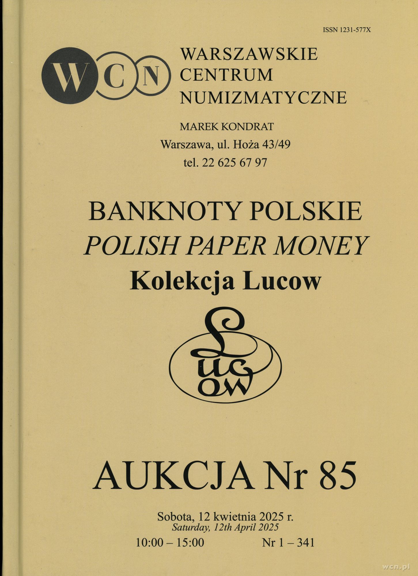 literatura numizmatyczna, Katalog aukcji WCN nr 85, Banknoty Polskie. Kolekcja Lucow, 12.04.2025
