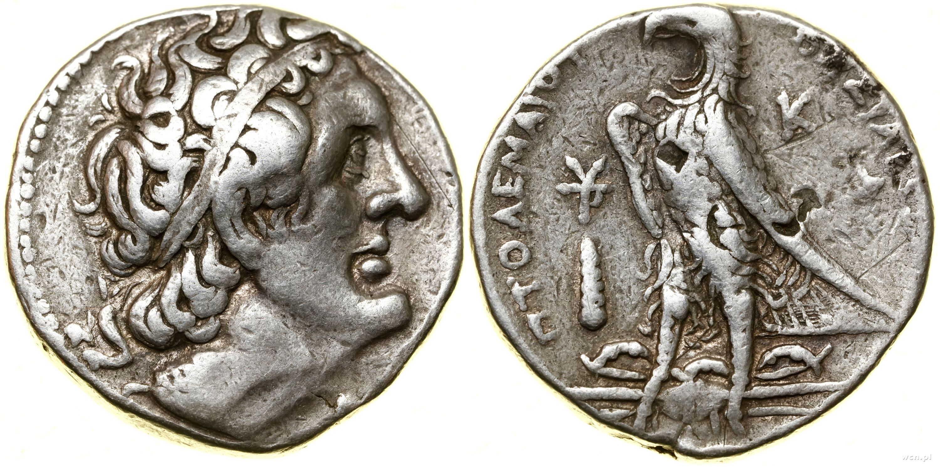 | Opis: | Grecja i posthellenistyczne - Egipt - Ptolemeusz II Philadelphos (285–246 pne), tetradrachma, (265–264 pne), Tyr, Aw: Głowa władcy w prawo, Rw: Stojący na piorunie Orzeł w lewo, po boku monogramy, wokoło napis ΠΤΟΛΕΜΑΙΟΥ ΒΑΣΙΛΕΩΣ |