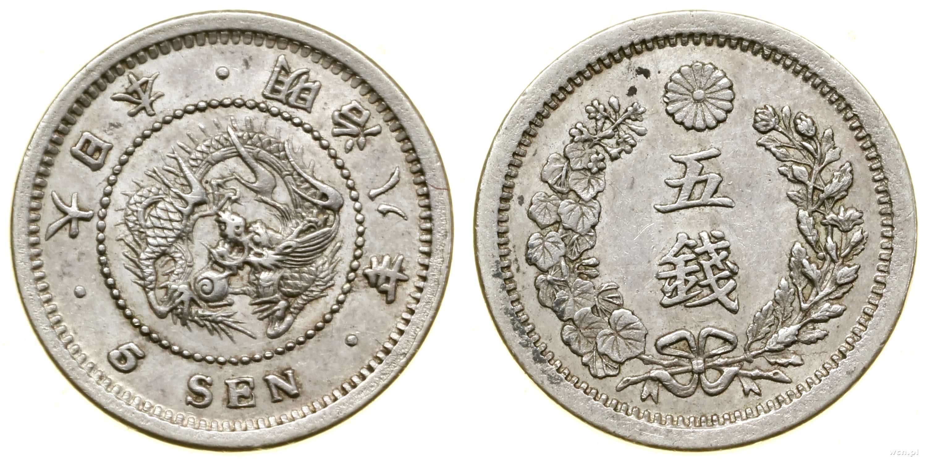 | Opis: | Japonia - Mutsuhito (Meiji) (1867–1912), 5 senów, 8 rok (1875), Osaka |