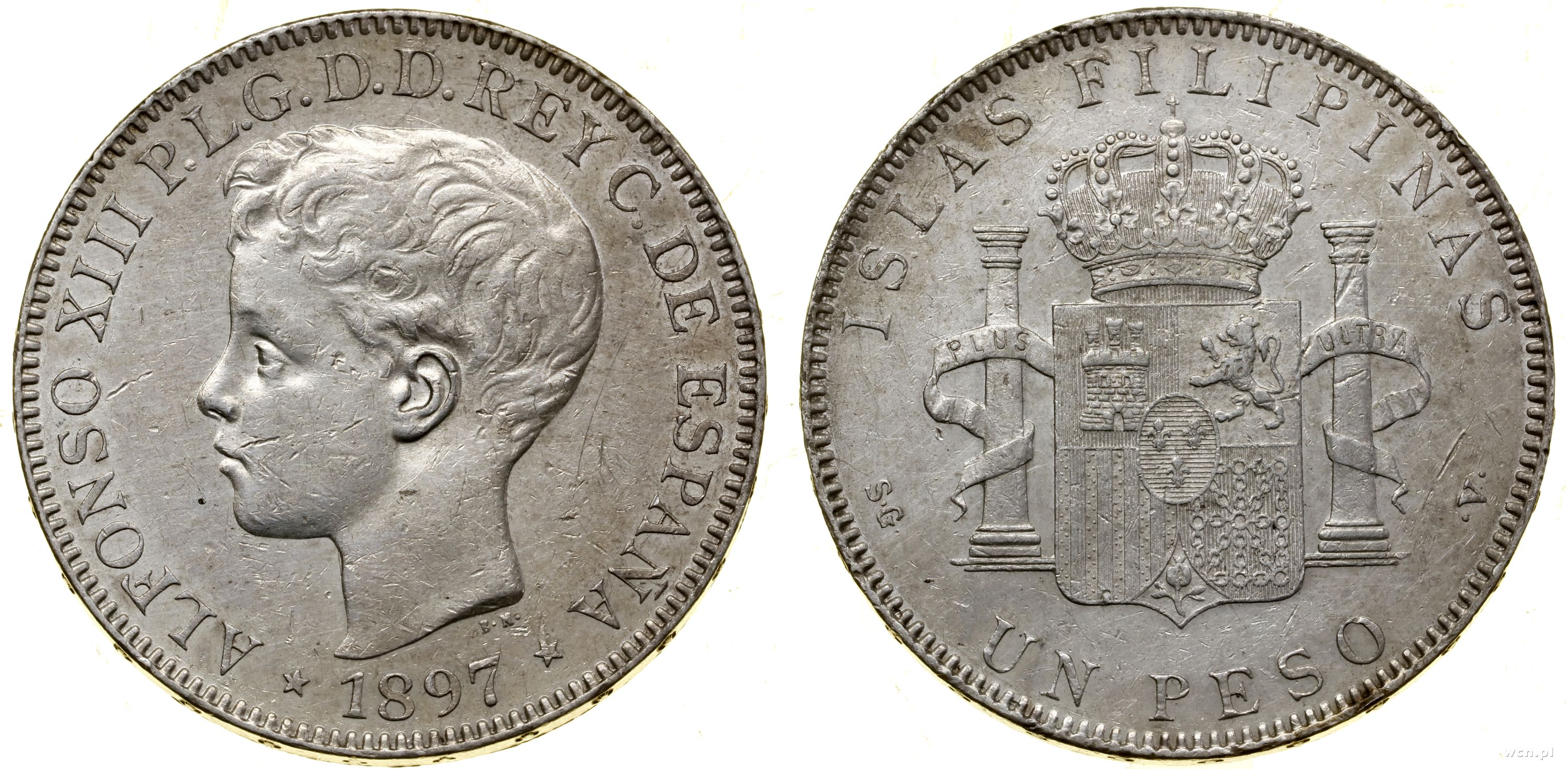 | Opis: | Filipiny - Alfons XIII (1886–1898), peso, 1897 |