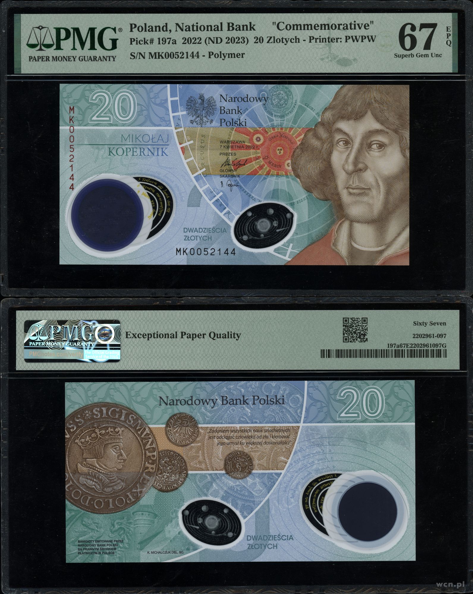 | Dodatkowe informacje: | pięknie zachowany polimerowy banknot, bez foldera NBP , w opakowaniu firmy PMG nr 2202961-097 z oceną 66 Gem UNC EPQ |