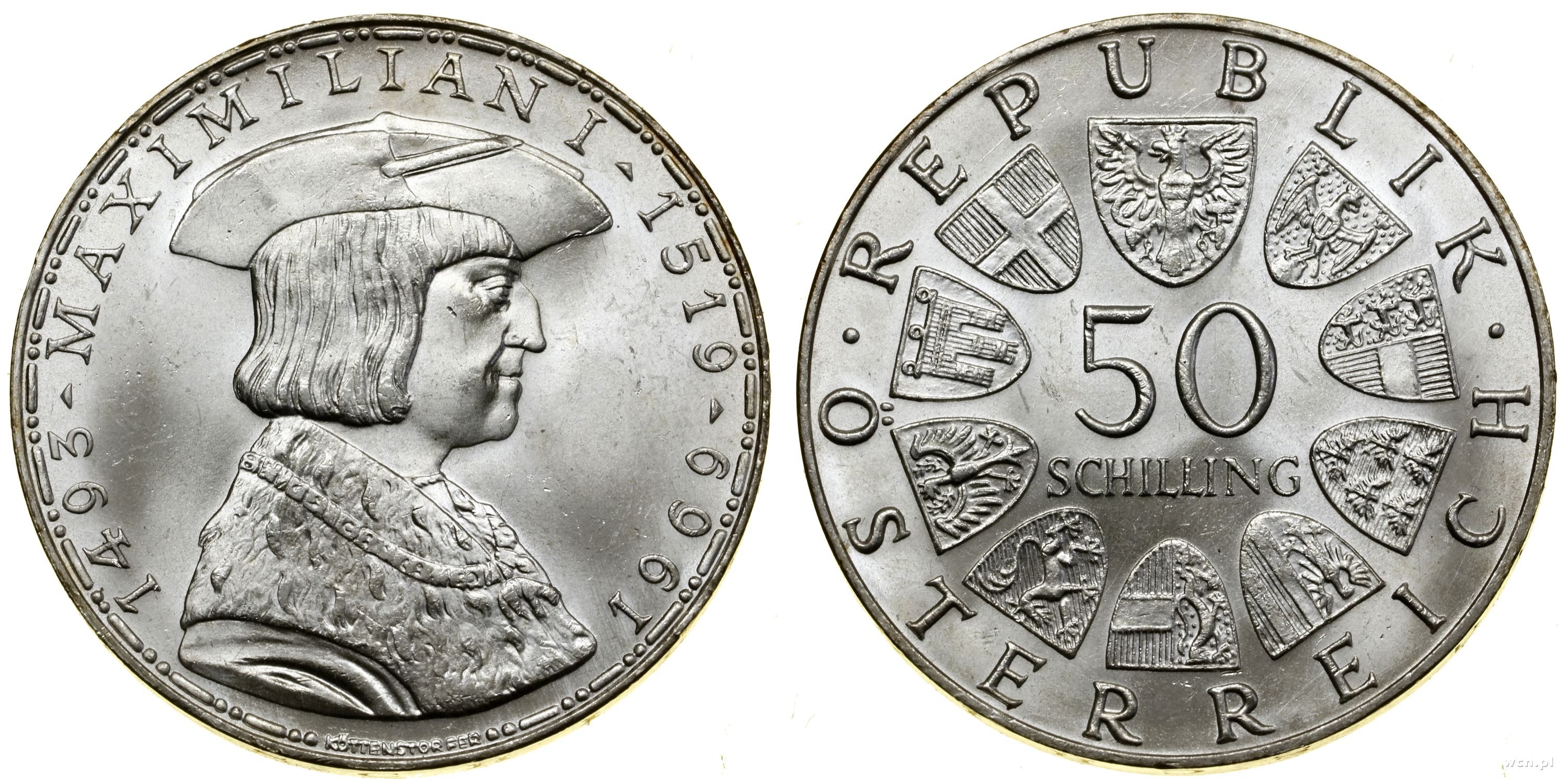 | Opis: | Austria - II Republika (od 1945), 50 szylingów, 1969, Wiedeń, 450. rocznica śmierci cesarza Maksymiliana I |